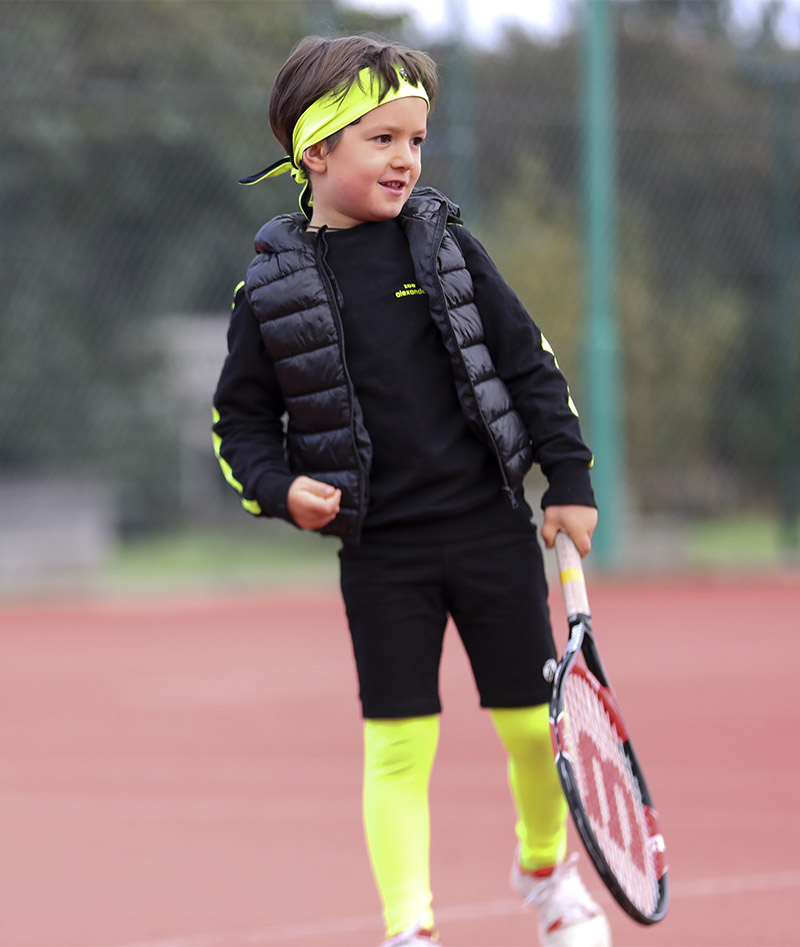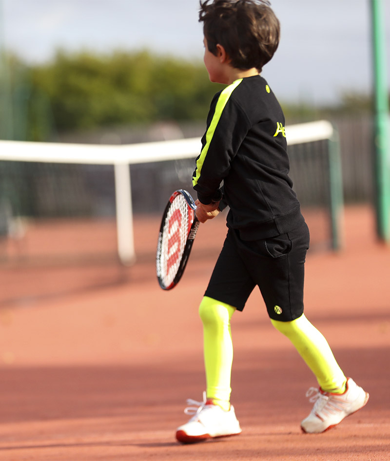 New Winter designer sports performance Boys Tennis Base Layer leggings by Zoe Alexander. We have designed our new long tennis base layer neon leggings, now available in high visibility neon yellow or neon orange. These phenomenal new full length tennis base layers offer the player the certainty that they will stay warm during play. They are easily worn under Tennis Shorts or Tennis Treggings for those chilly training mornings and evenings. They are made from stretch fabric, are comfortable, supportive and great to play in! A “Must-Have” for all boy tennis players!