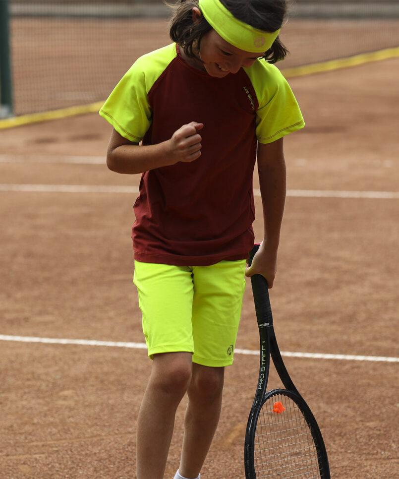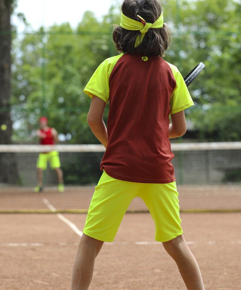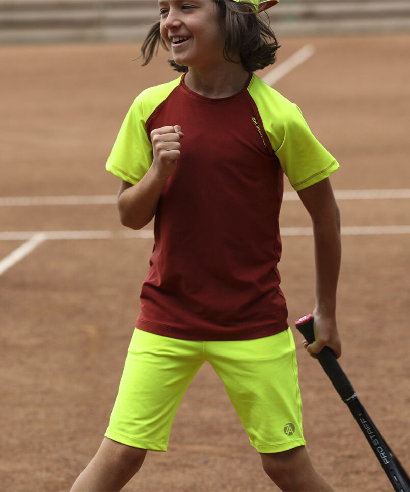 Designer colours: Burnt Ochre/Neon Yellow Top with Matching Neon Yellow Shorts
