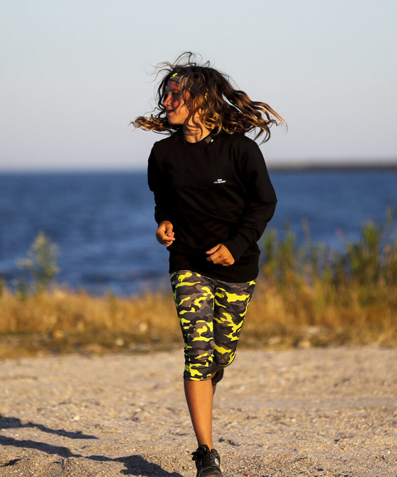 The Camo Neon Cropped Leggings composition and care details are:-