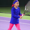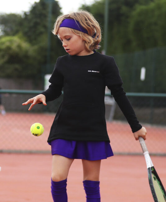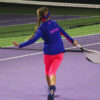 Welcome to the new designer sports performance cotton Sophia Long Sleeve Tennis Top by Zoe Alexander. We now have a stunning long sleeve blue training tennis top with neon pink insets on the arms designed to complement any of our new Sophia collection. This training top can be worn with our Sophia Tennis Dress, Tank Top, Cobalt Blue Performance Cropped leggings, or our Cobalt Blue Long Leggings (Winter or Regular Quality) during her tennis training sessions. A “Must-Have” for all tennis players!