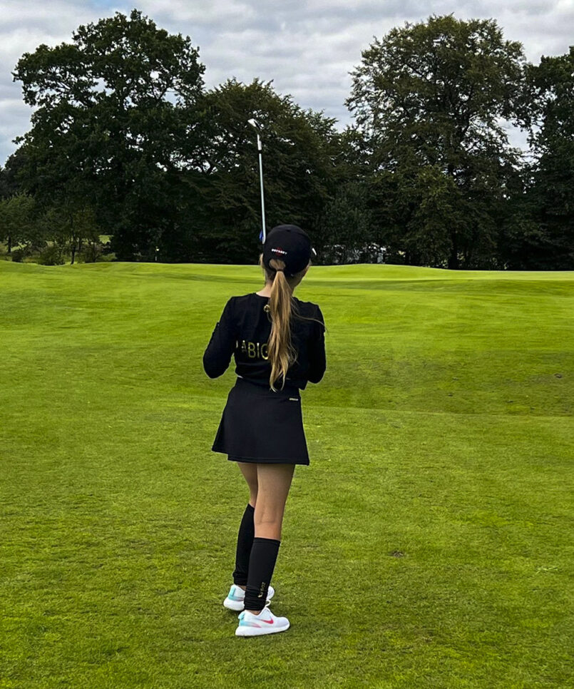 Here we have the comfortable, practical Black Girls Golf Top. This soft cotton long sleeve top from the Zoe Alexander Golf Collection will keep the little lady warm on the fairway and at the golf greens. The simple design is a stylish black body with long sleeves that extend beyond the wrist to keep the chill off the back of the hands when walking the fairways. We finish the top with sleek gold metallic logos. Don’t forget you can choose to have your top personalised with your own name to satisfy any budding golf junior. #HoleInOne!