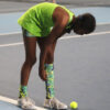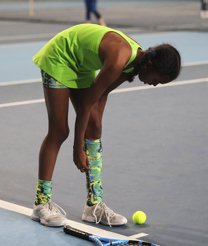 Welcome the new designer sports performance cotton Kaia Girls Tennis Tank Top in Pistachio by Zoe Alexander. We now have a stunning green training vest tennis top with silver inset shoulder straps designed to complement any of our animal print monochrome leggings. This tank top can also be worn with our Rainbow Snakeskin Tennis Cropped Leggings or Tennis Shorts during her tennis training sessions. A “Must-Have” for all tennis players!