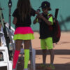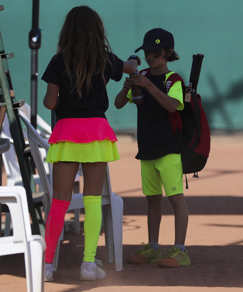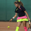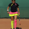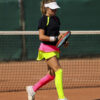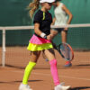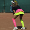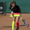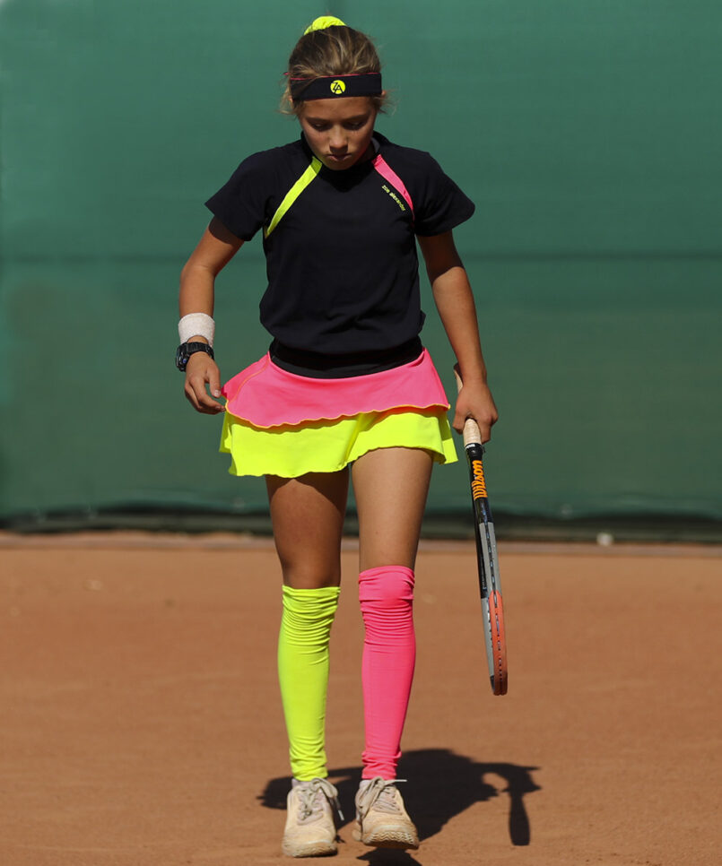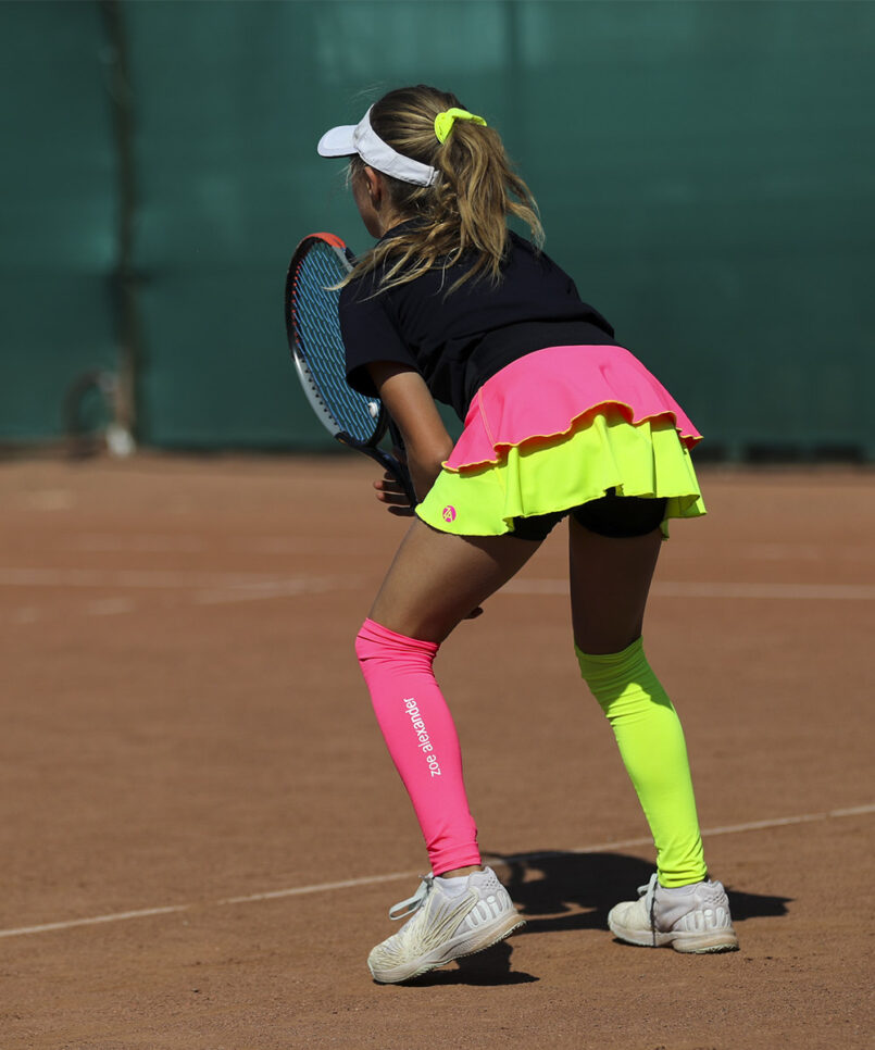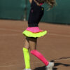 Here are the care and composition details for the navy and neon Isabella Tennis Skirt:-