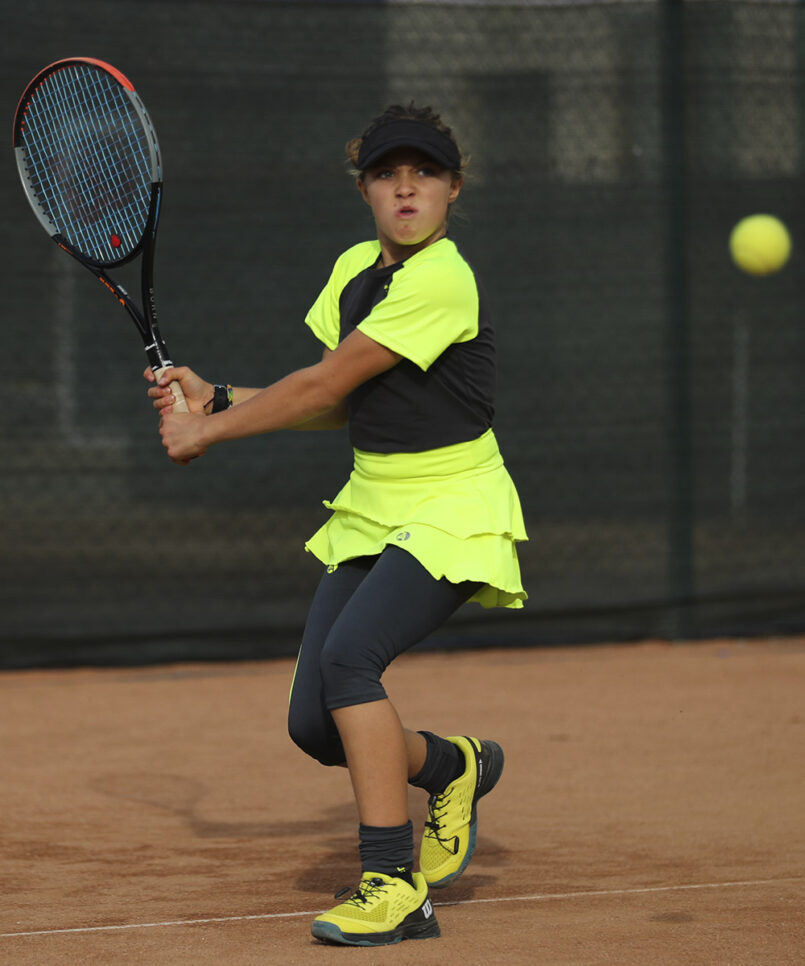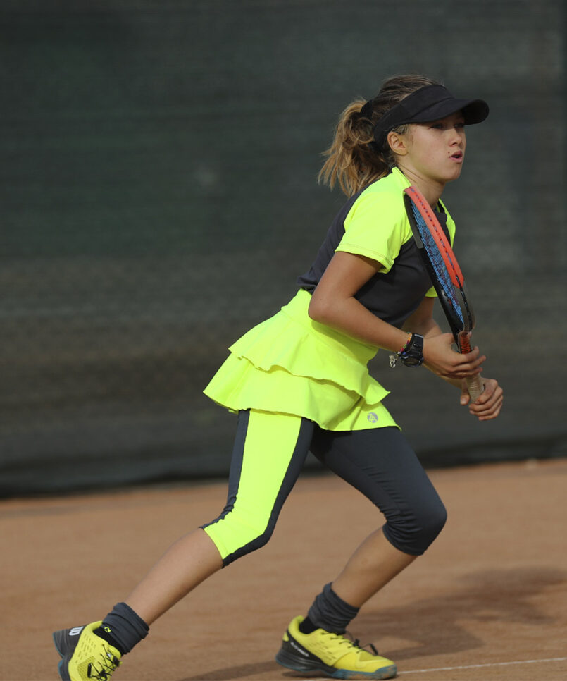 Here are the care and composition details for the neon yellow Katya Tennis Skirt:-