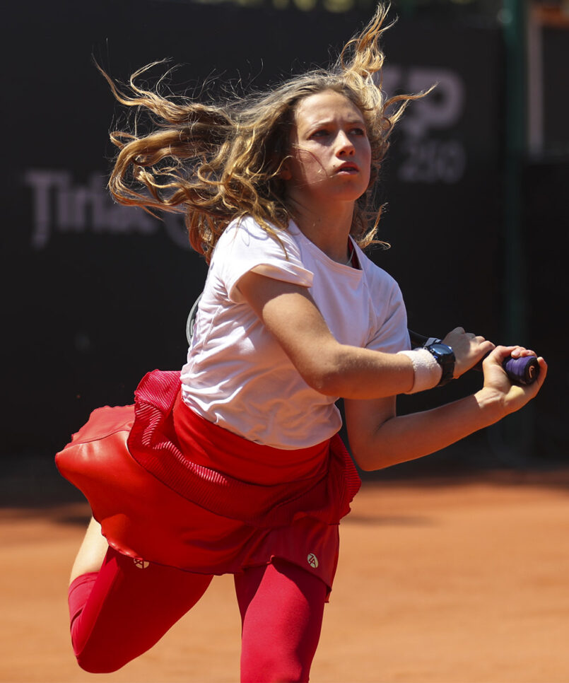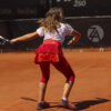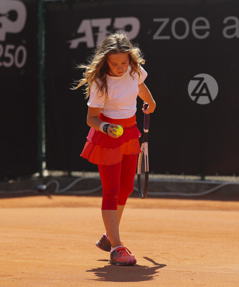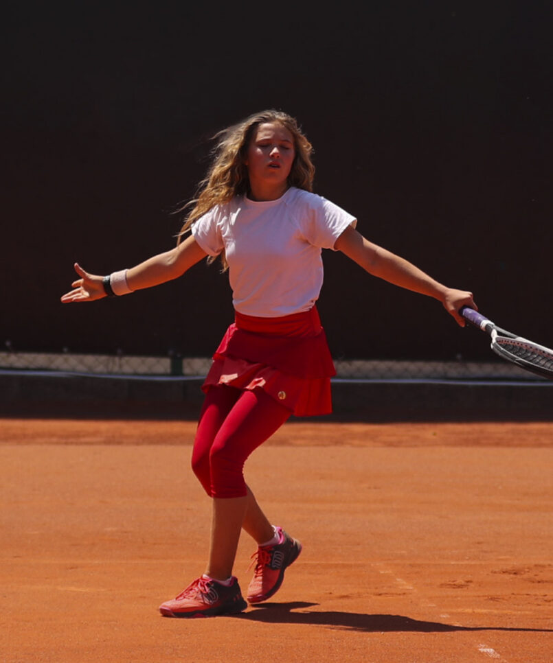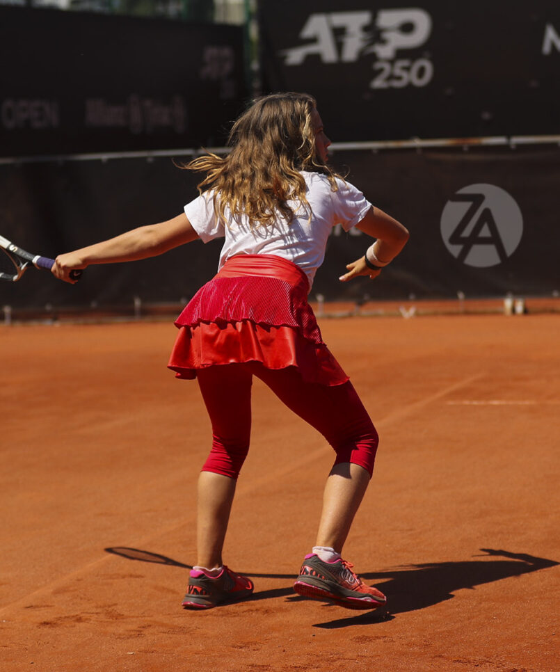 Here are the care and composition details for the Red Layered Tennis Skirt:-