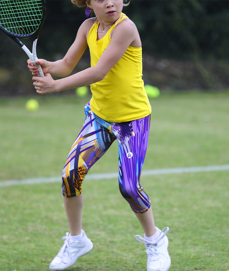 Here are the composition and care details for the Girls Tennis Viviana Print Cropped Leggings:-