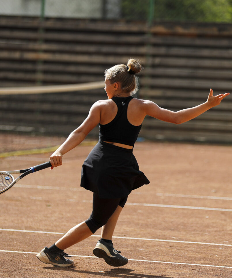 Here are the care and composition details for the Girls Tennis Dress Daria Black:-