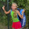 Here are the care and composition details for the Girls Tennis Dress Racerback :-
