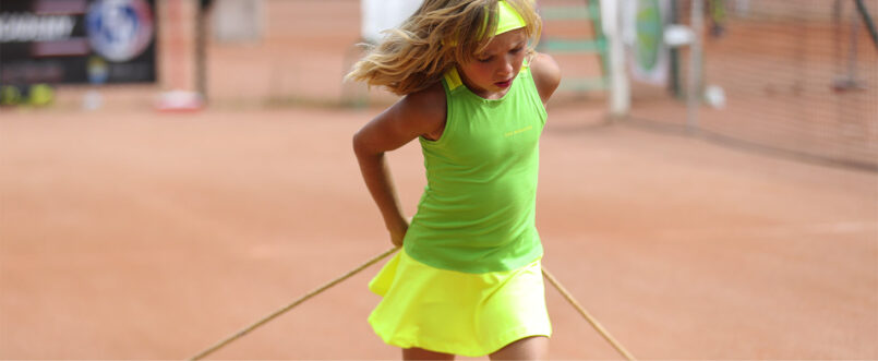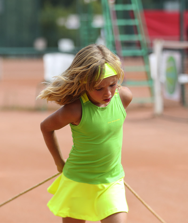 Here are the care and composition details for the Girls Tennis Dress Rebecca Racerback :-