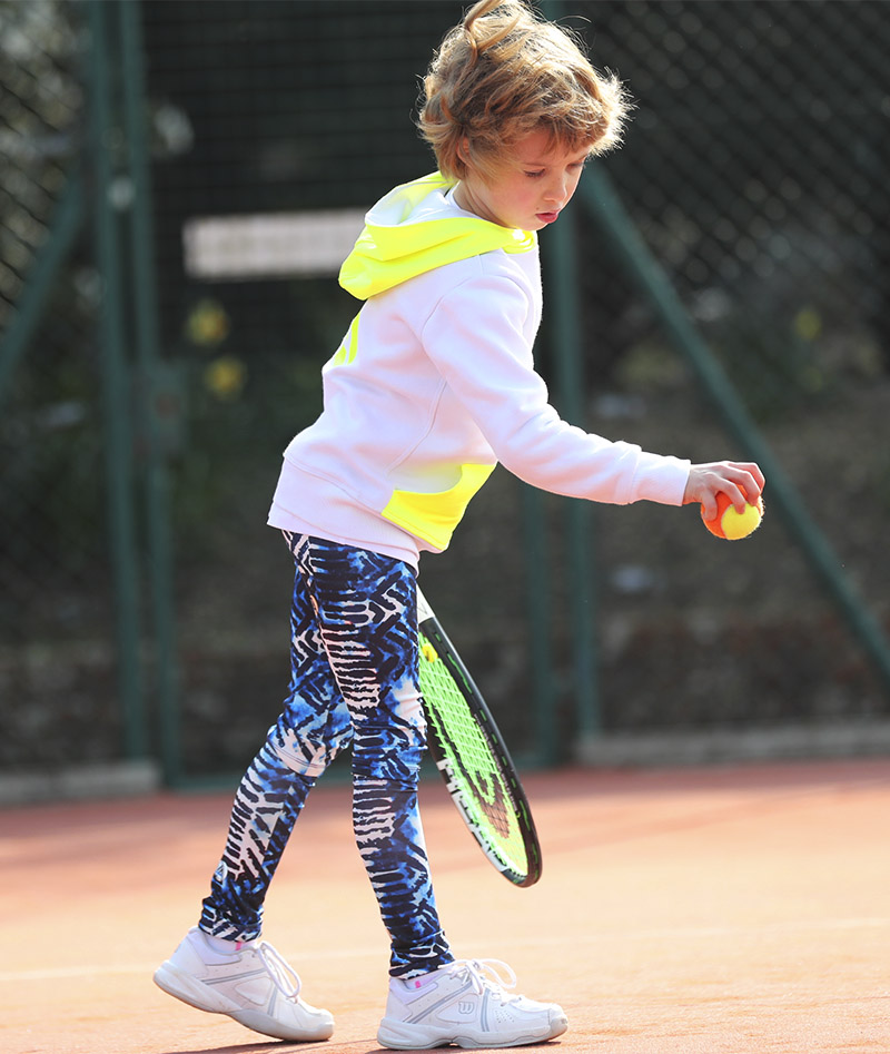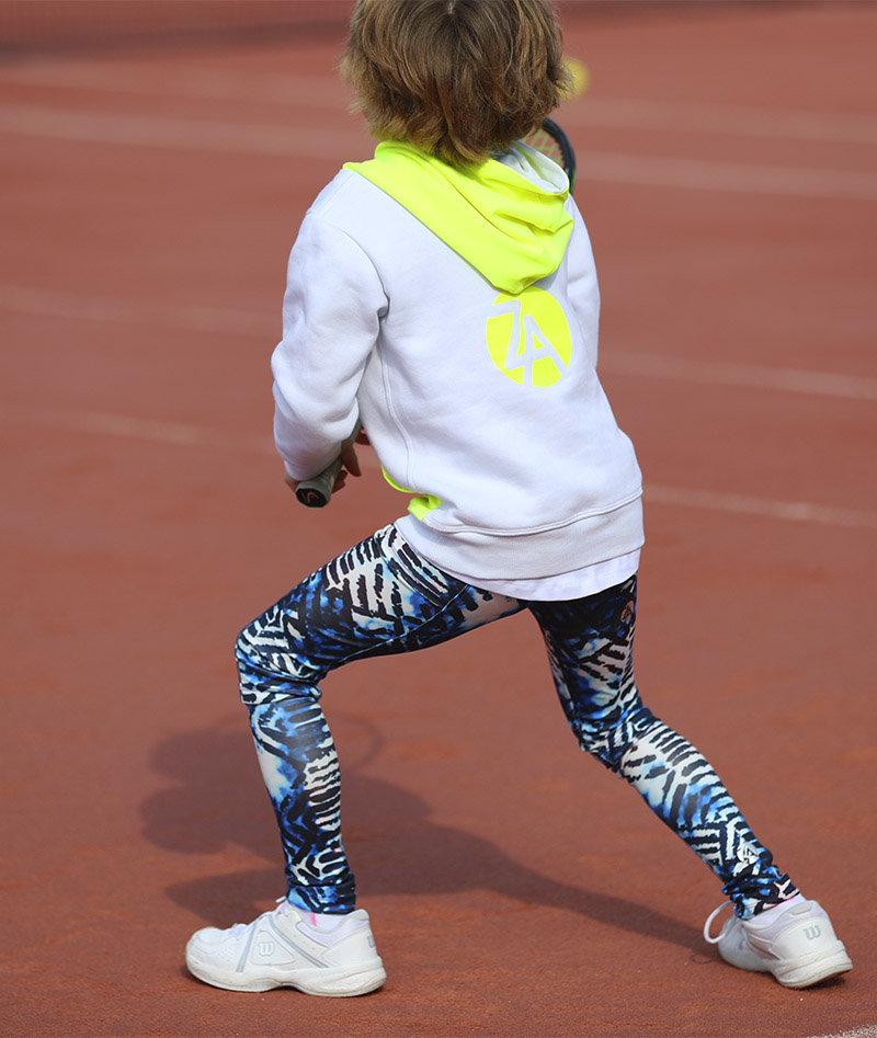 Here are the composition and care details for the Girls Tennis Blue Vipa Print Leggings:-