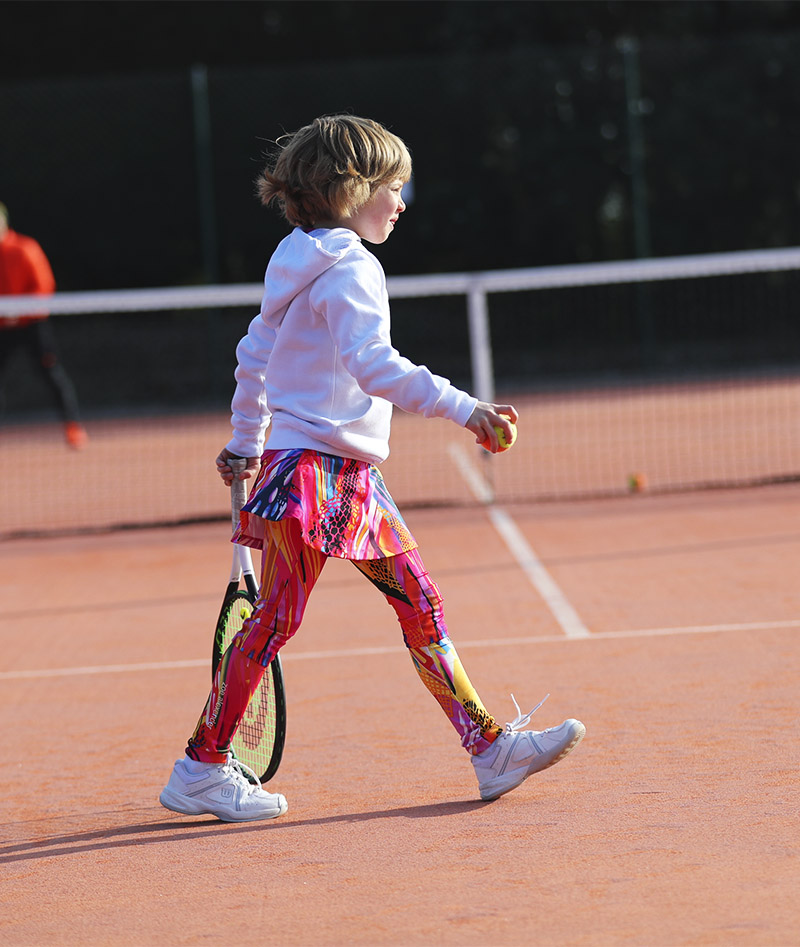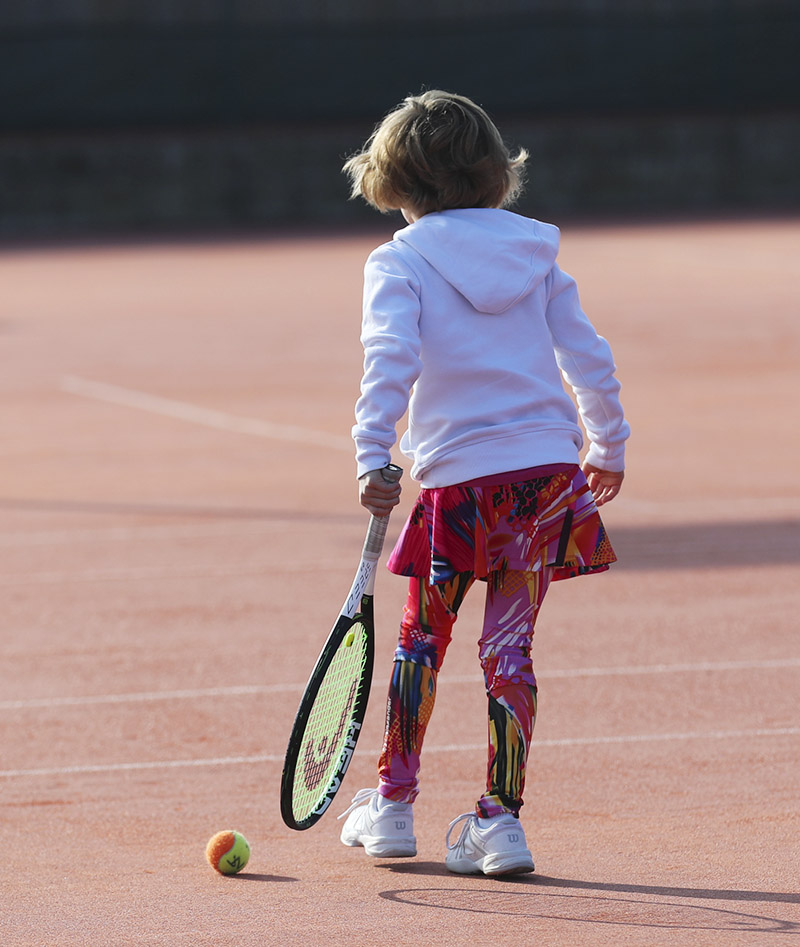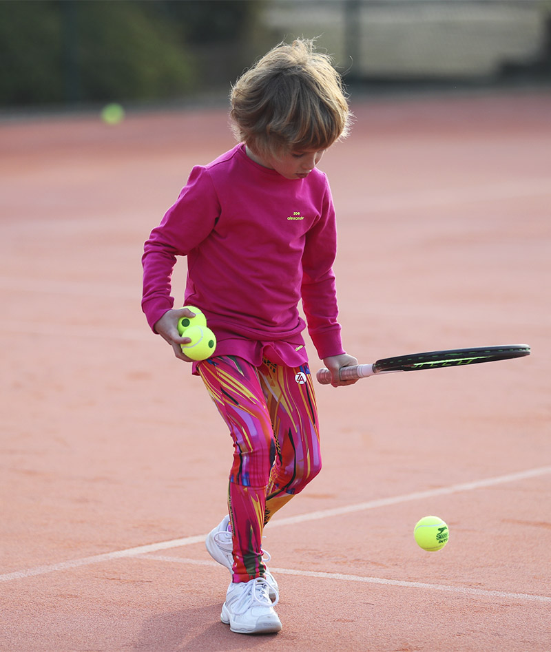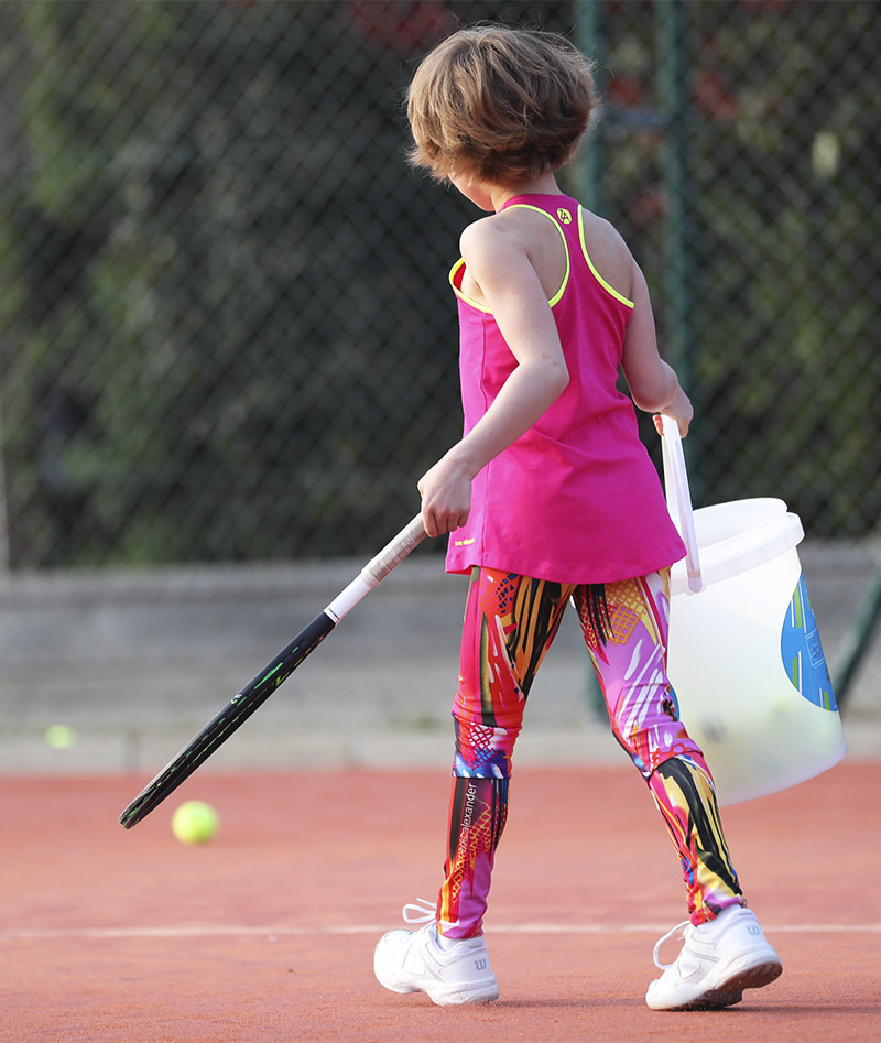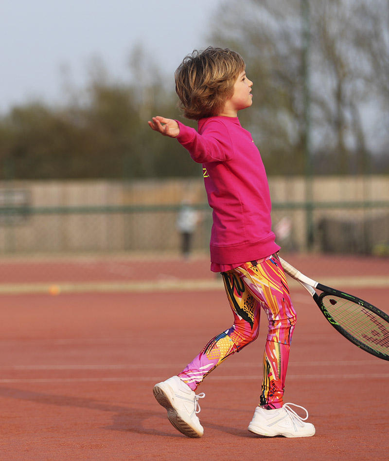 Here are the composition and care details for the Girls Tennis Pink Simona Print Leggings:-