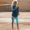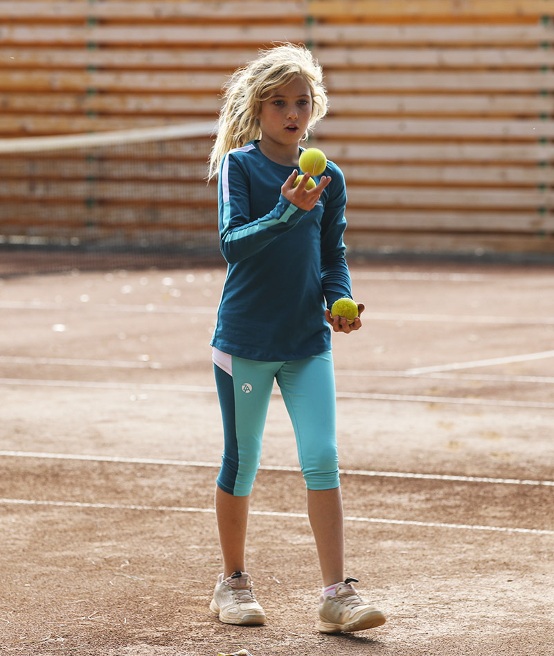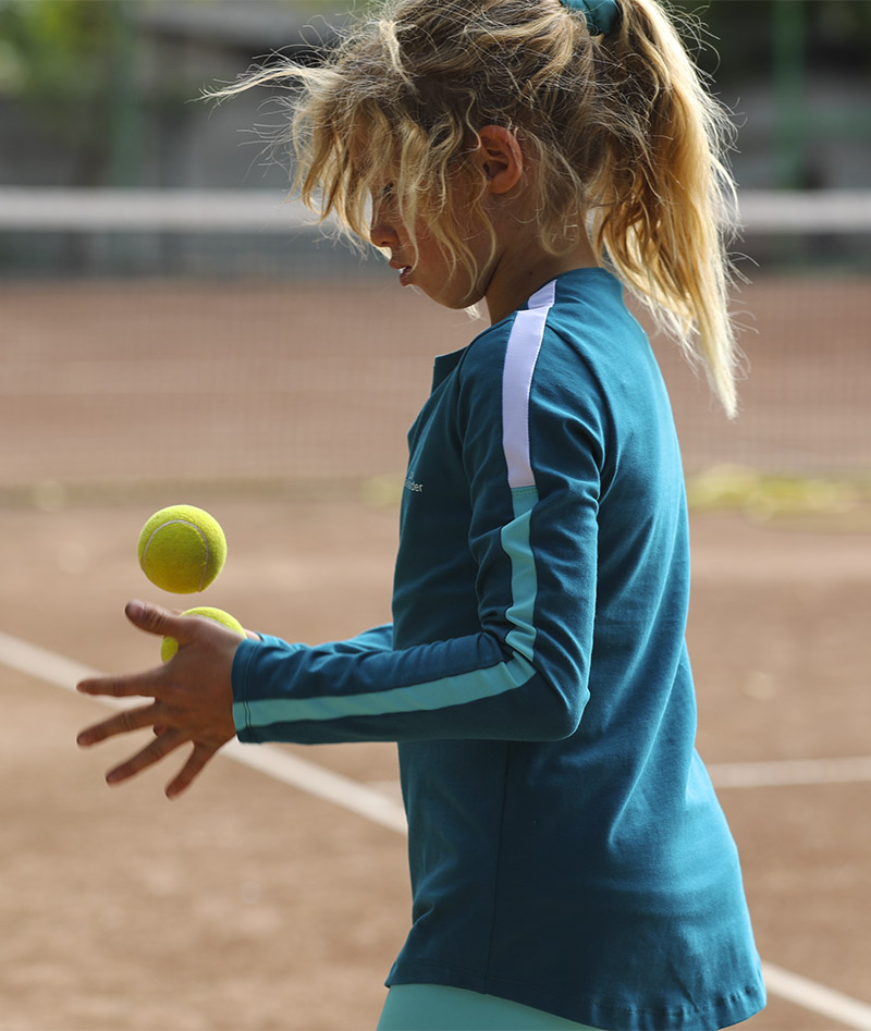 • Girls Tennis Long Sleeve Top comes in petrol green with mint and white insets