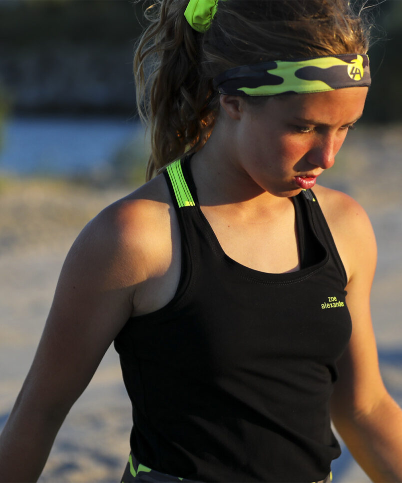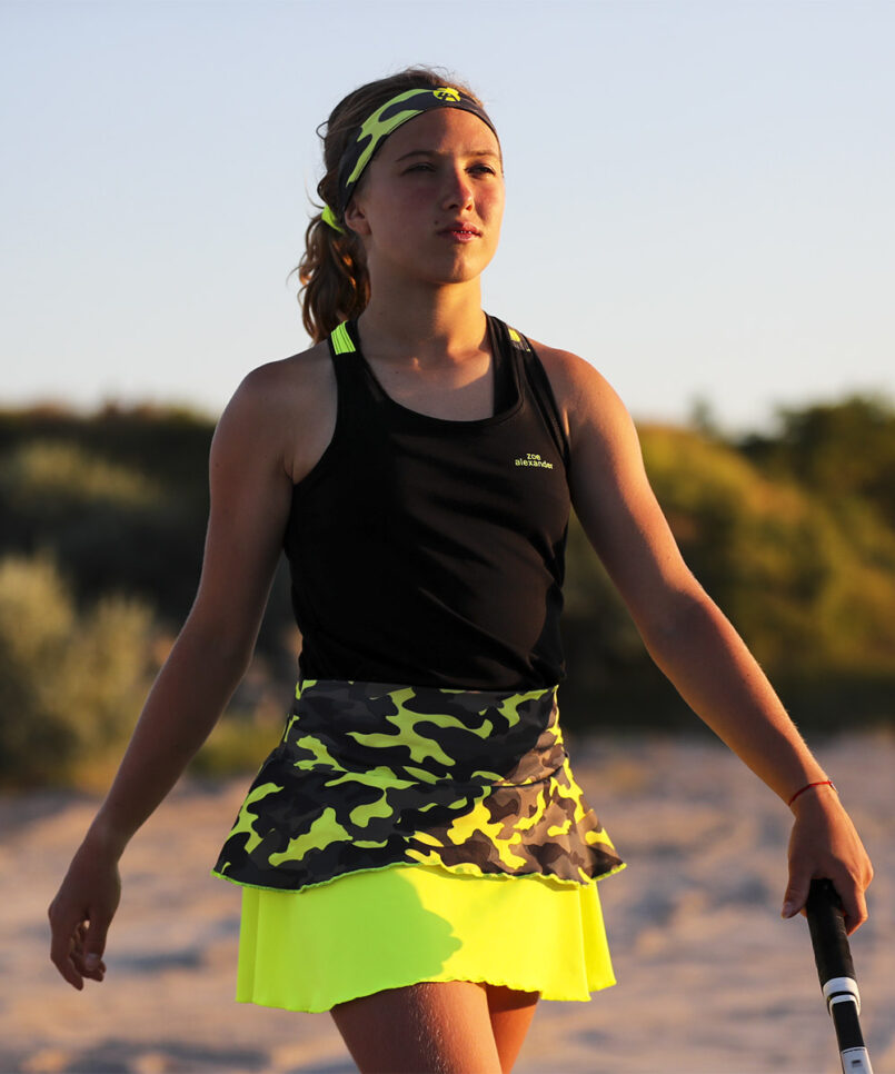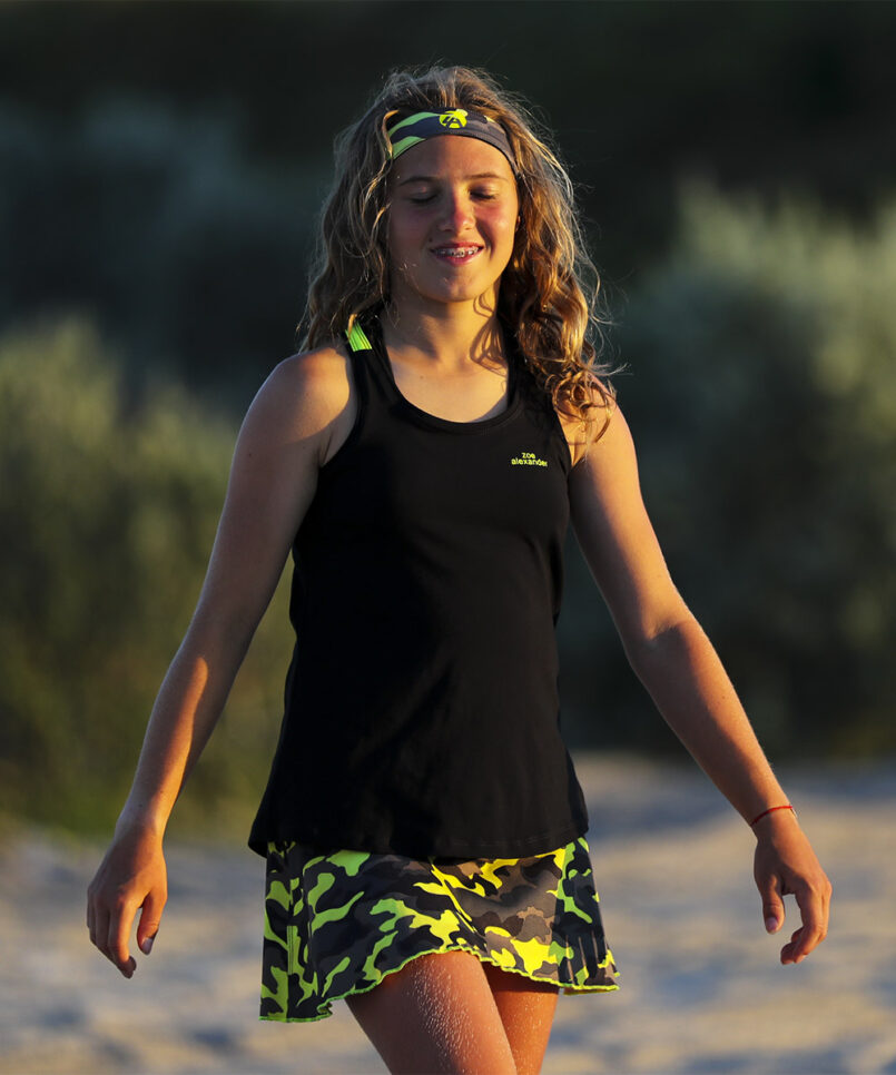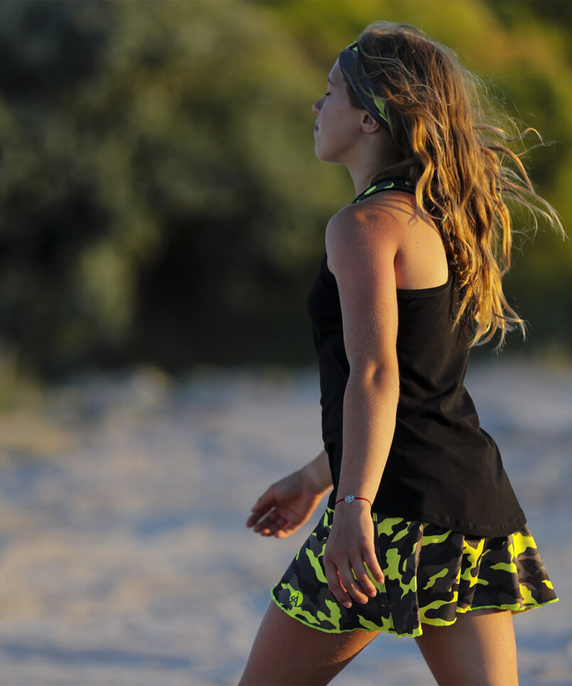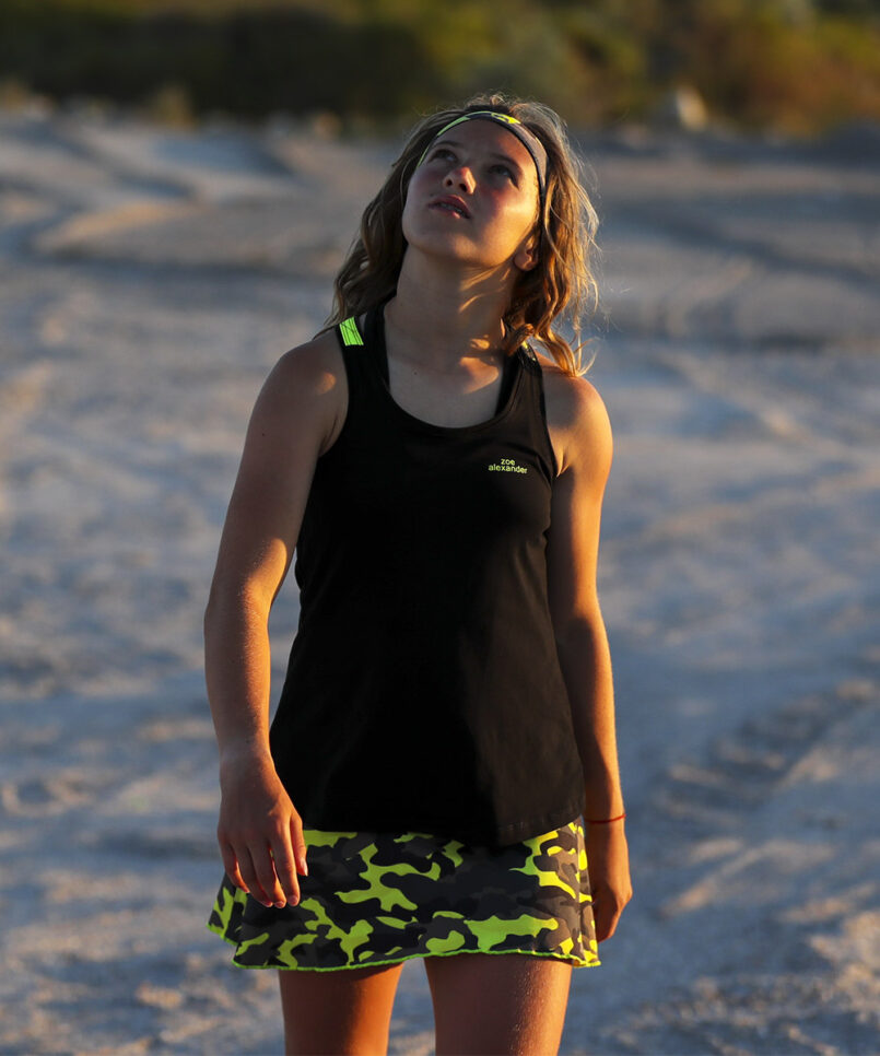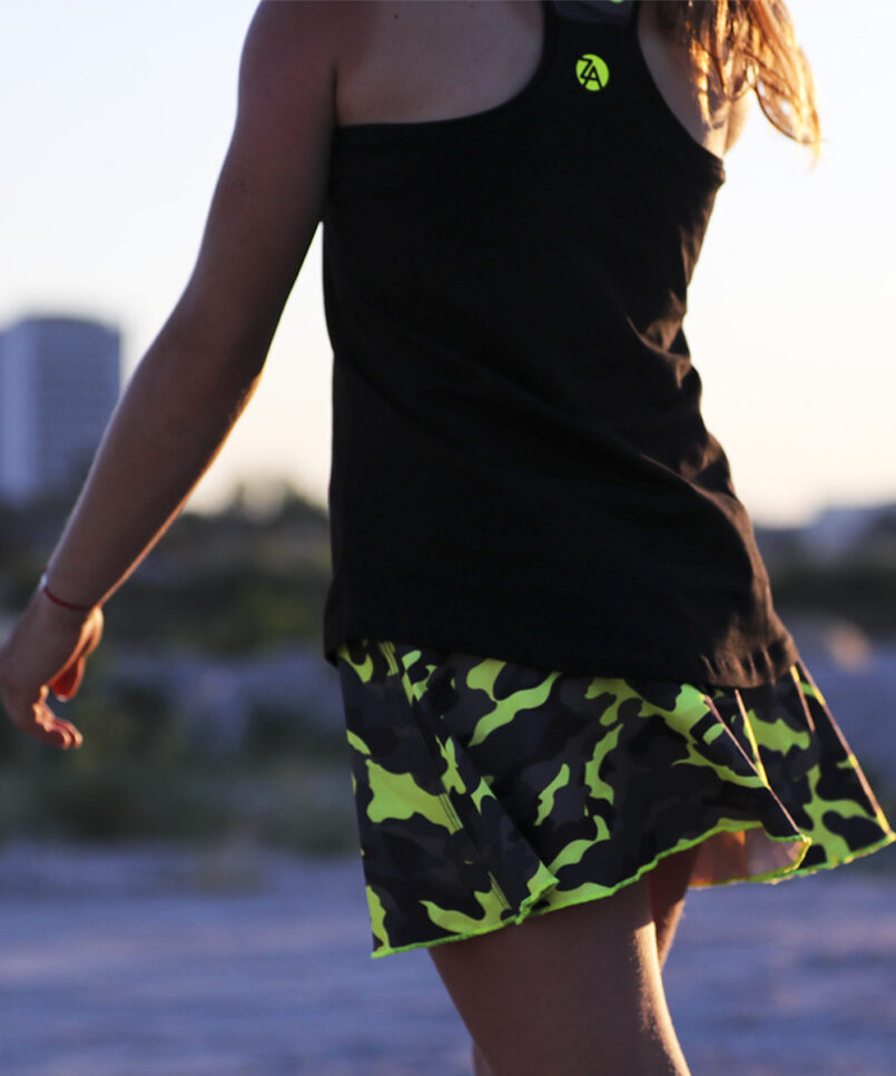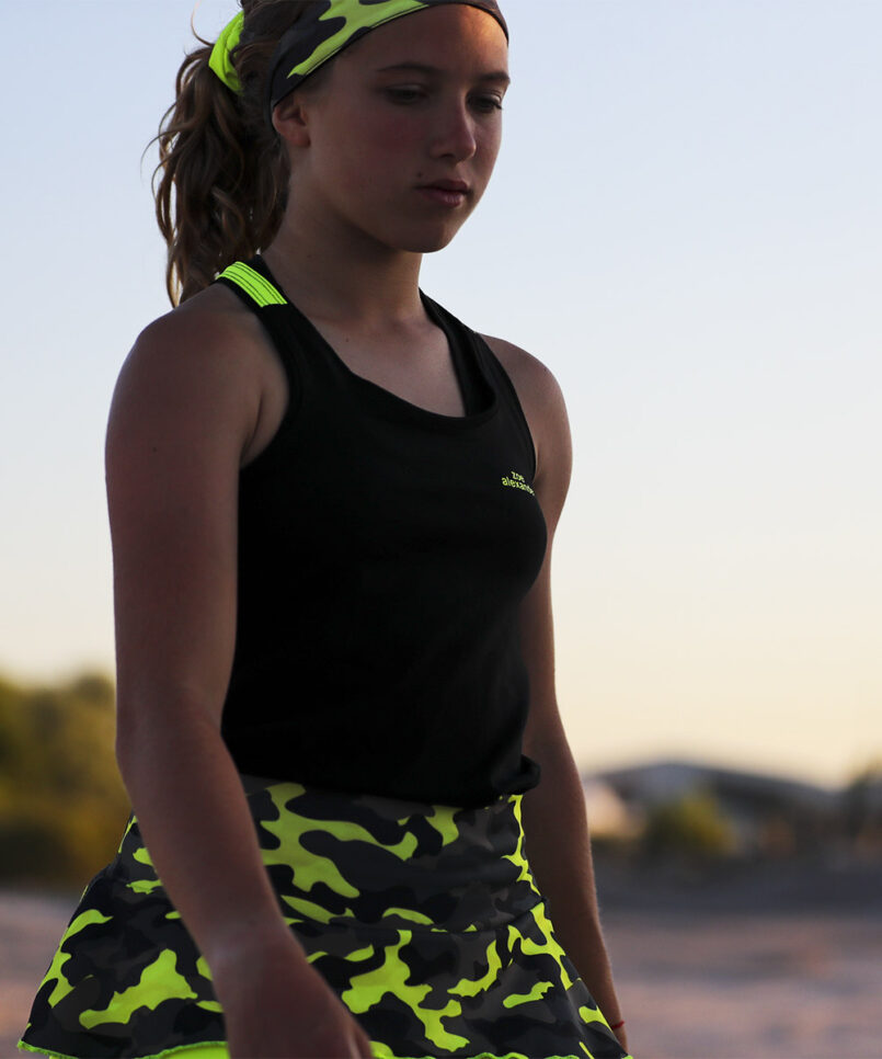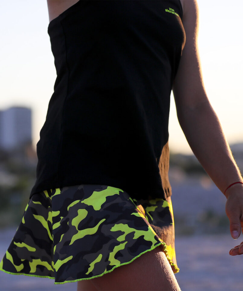 SEEN HERE WITH THE MATCHING CAMO NEON BLACK TANK TOP
