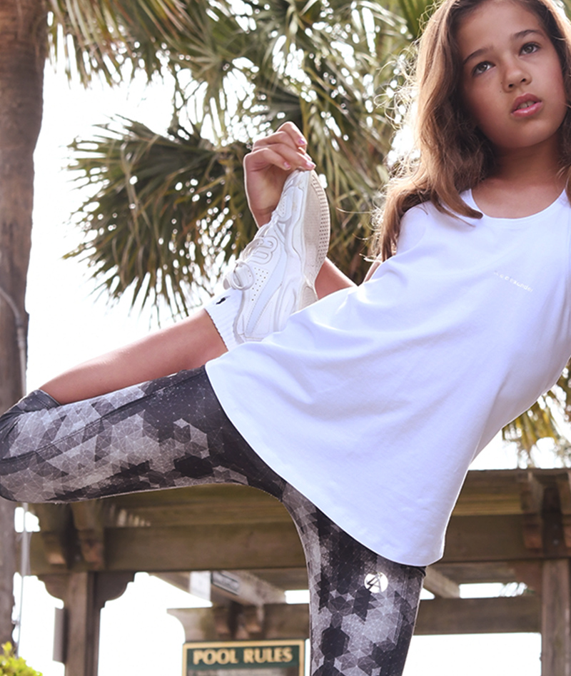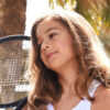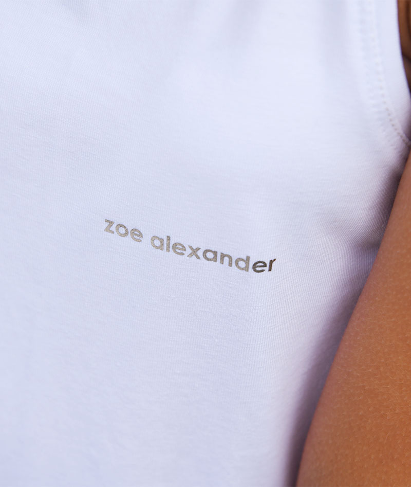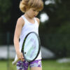 Welcome the new designer sports performance girls Anya Girls Tennis Tank Top by Zoe Alexander. A stunning white over-sized vest top with silver coloured shoulder straps which can be paired up with any of our new print Performance tennis capri pants for girls with the much wanted ball pocket. Our tank tops are from high quality breathable cotton lycra fabric making them comfortable and great to play in! A “Must-Have” for all tennis players!