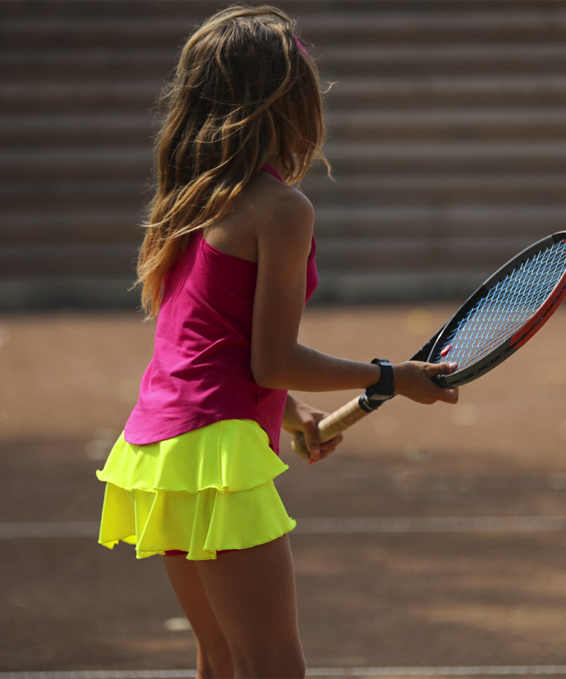 Welcome the new designer sports performance Girls Scallop Tennis Vest by Zoe Alexander. We now have a stylish cropped scallop training vest top with a large variety of colours to choose from. This Tank Top Vest can be worn with the our tennis Shorts, Skirts or matching Cropped Leggings or Long Leggings during her tennis training sessions. A “Must-Have” for all tennis players!