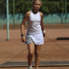 Welcome the new designer sports performance cotton Zebra Girls Tennis Vest by Zoe Alexander. We now have a stunning white training vest tennis top with Zebra print inset shoulder straps designed to complement any of our Zebra range. This tank top can be worn with our Zebra Crossover Skirt or Zebra Cropped leggings during her tennis tournaments or training sessions. A “Must-Have” for all tennis players!