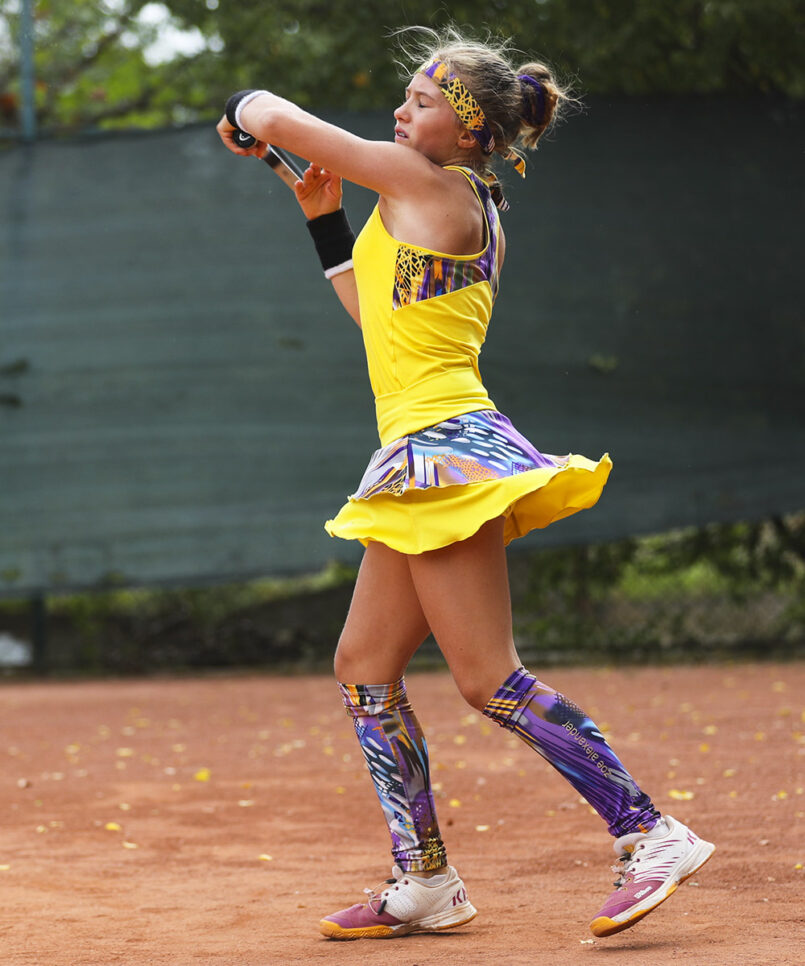 Here are the care and composition details for the Viviana Layered Tennis Skirt:-