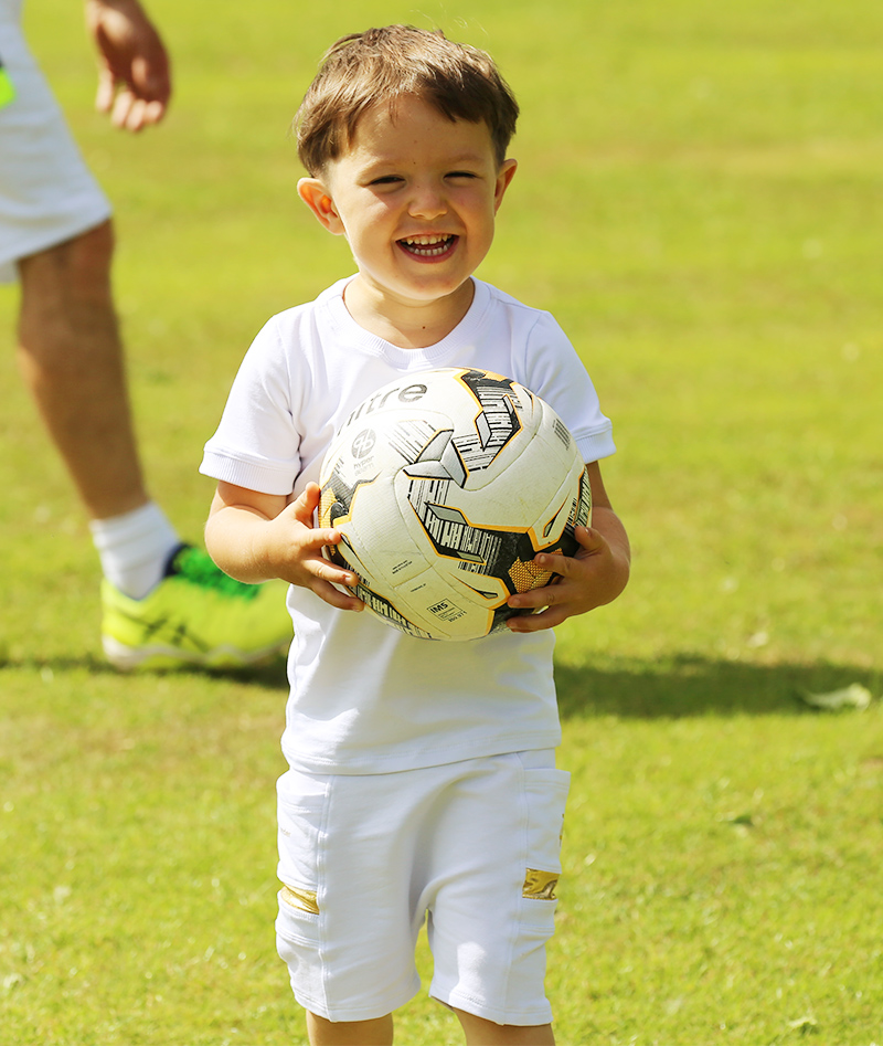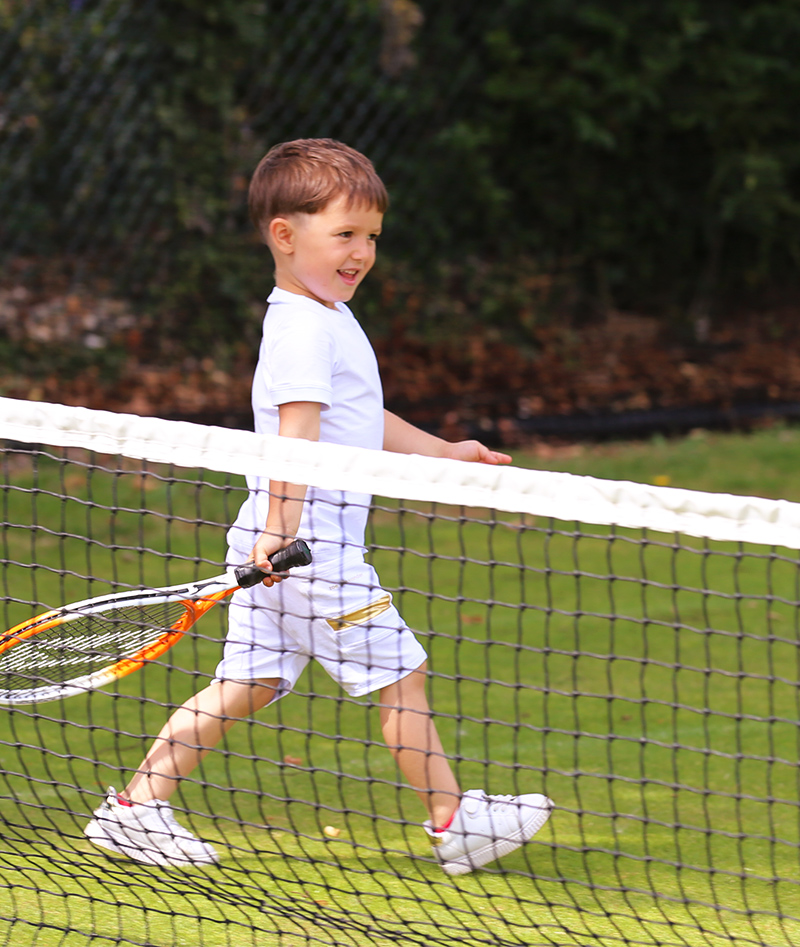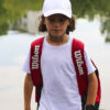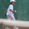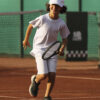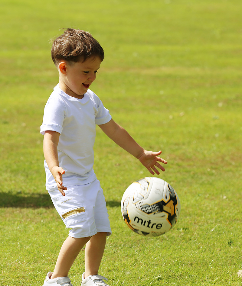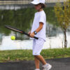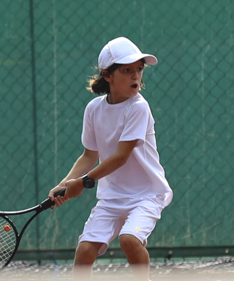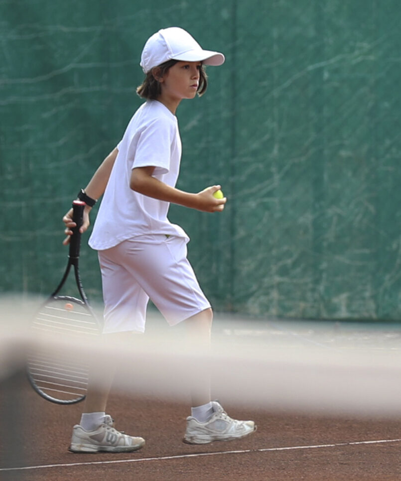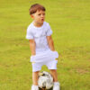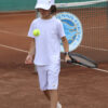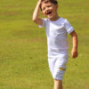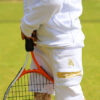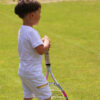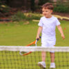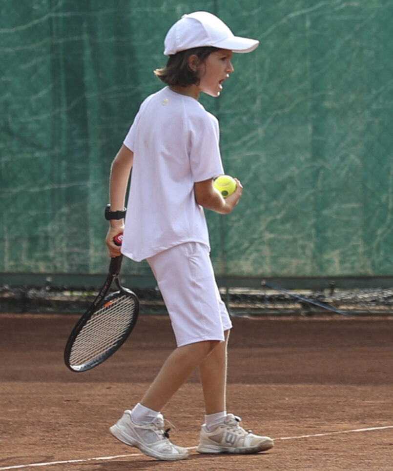 The new Wimbledon Boys Tennis Outfit! Dressed to impress! Tradition with contemporary style. Wear a Wimbledon winner with our new designer boys tennis clothing design from the Zoe Alexander collection, available as an all white tennis outfit with dashes of metallic gold from the logos that set him apart from the crowd both on and off the court! A cotton white Raglan Tee with white scalloped back, gold logos and performance white shorts with the ball pockets decorated with the Zoe Alexander gold logo, guaranteed to make everyone notice him!