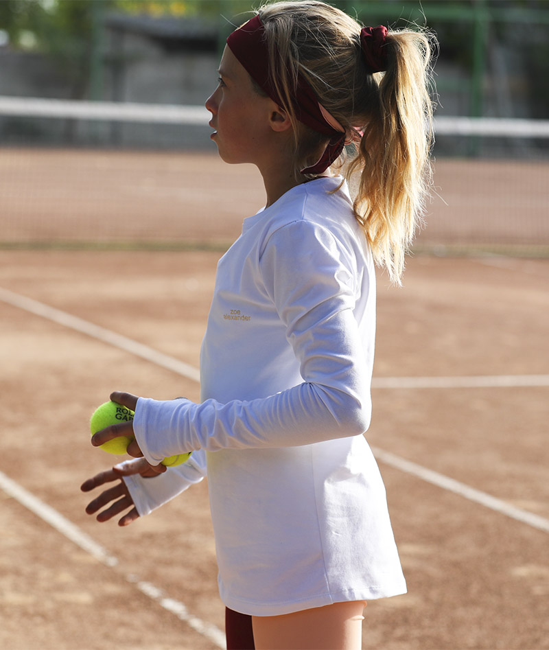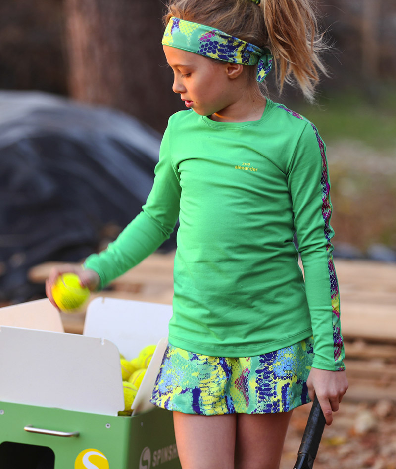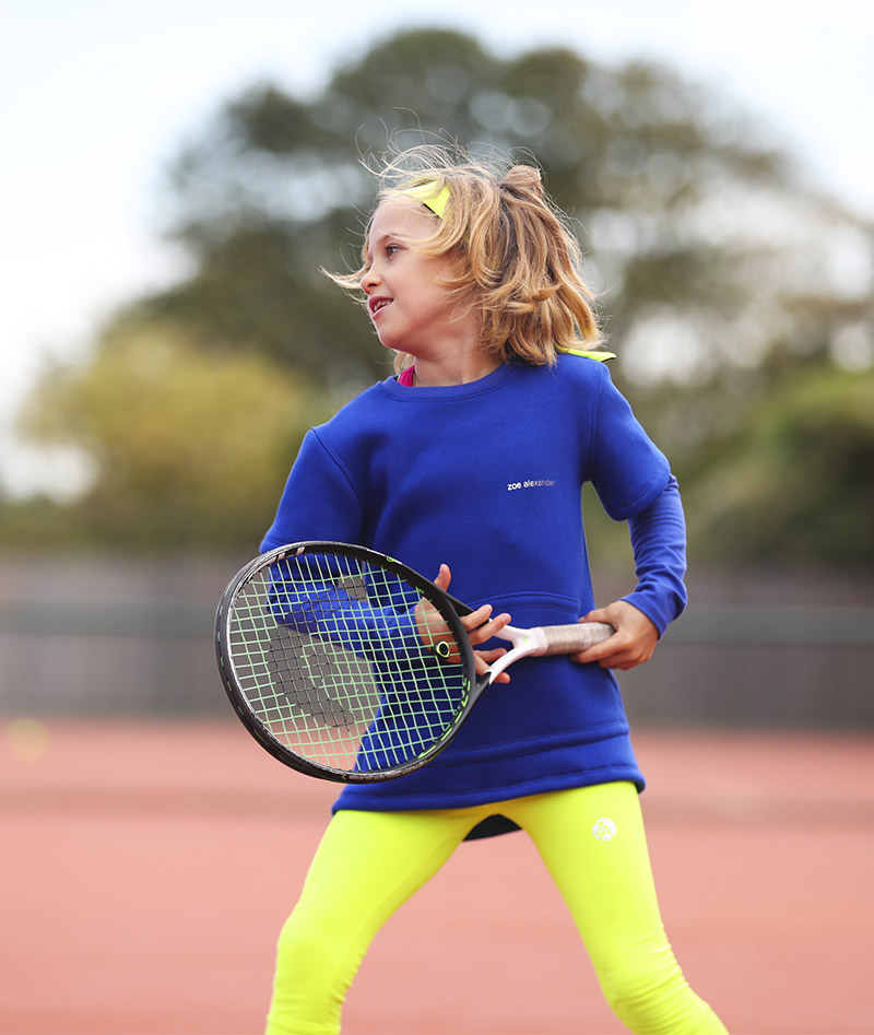 Zoe Alexander also offers girls the option of fleece lined leggings with a ball pocket suitable for either left or right handed players. Again you have a choice from many colours and matching collections to team up with your tennis tops or dresses for training and matches.