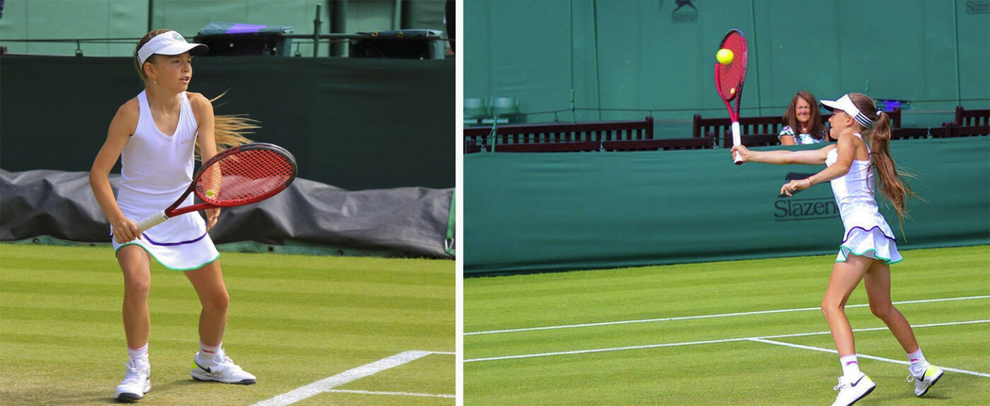 Imagine you have been offered that childhood dream opportunity to take to the infamous green lawn courts at Church Road SW19? Such a dream came true for Sophia Krutikova. Here she shares with us some moments from that special occasion. Let’s see what she wore that day. Well, she chose our signature Wimbledon White Tennis Dress, an all white affair trimmed with the traditional violet and green of Wimbledon. Don’t forget the matching cotton white shorts with a ball pocket for left or right handed players. Zoe Alexander has you covered!